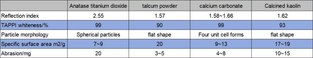 As can be seen from Table 1, compared with other materials, titanium dioxide has high whiteness, high density, high refractive index, fine and uniform particles, which means that paper using titanium dioxide has good whiteness and strong hiding power. , high strength, thin and smooth, not easy to penetrate when printing.
