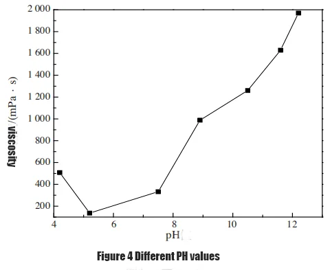 The same titanium dioxide was placed in different pH values and the viscosity was measured at the same concentration in the aqueous system. The results are shown in Figure 4.